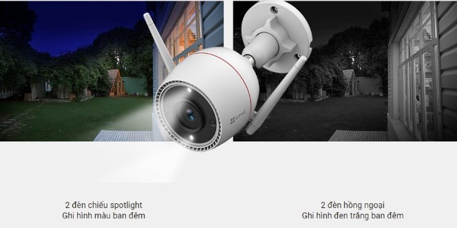 Cảm thấy không hài lòng với những hình ảnh đen trắng nhòe mờ, bị phơi sáng quá mức vào ban đêm? Camera Wifi EZVIZ H3C 2K giúp bảo vệ trong đêm chặt chẽ một cách dễ dàng hơn bằng cách khôi phục màu sắc và chi tiết. Ngoài tầm nhìn ban đêm IR khá sắc nét, thiết bị camera này có thể tăng sáng cho môi trường bằng hai đèn spotlight tích hợp để mang đến những cảnh quay đêm có màu sắc sống động.