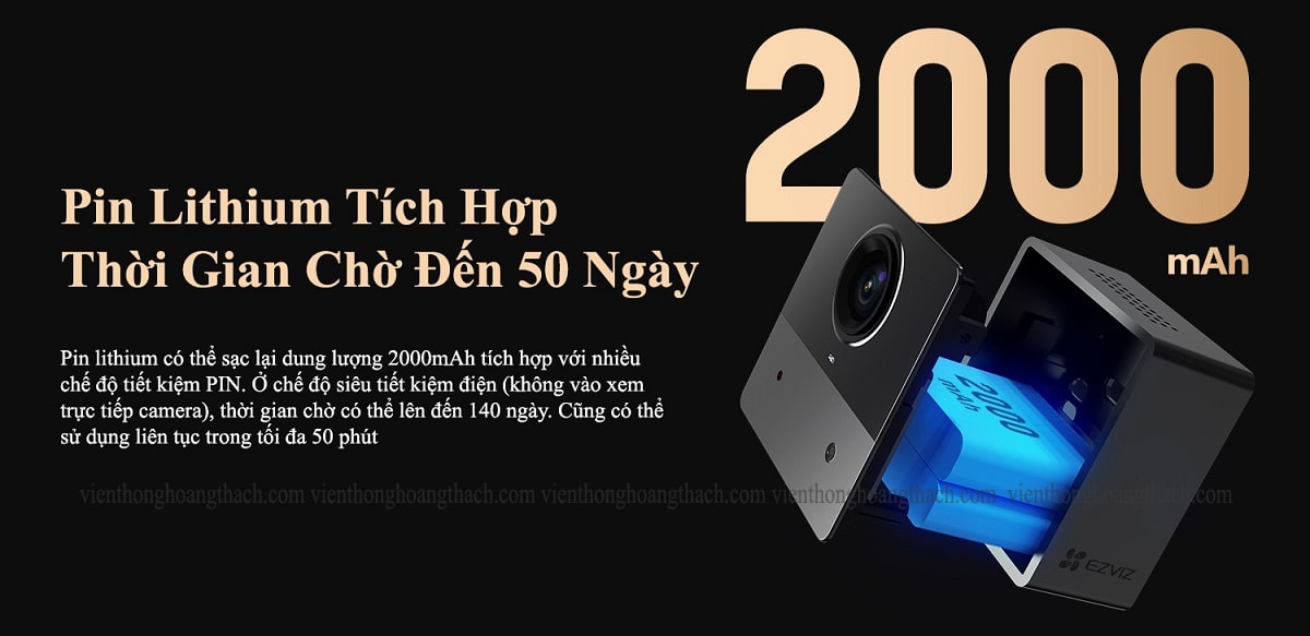 Camera Ezviz BC2 được tích hợp pin sạc 2.000 mAh, có thể hoạt động lên đến 50 ngày khi sạc đầy¹.