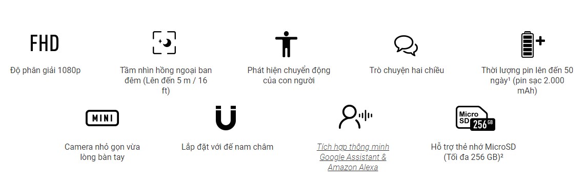 – Hỗ trợ pin 2000mAh, hoạt động 50 ngày ở chế độ tiết kiệm (hoạt động và ghi hình 5 phút/ngày) và 8 giờ ở chế độ hoạt động liên tục.