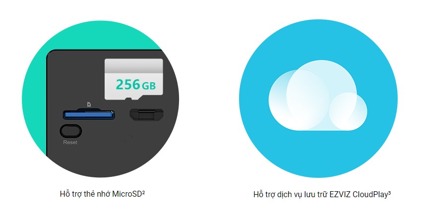 Bảo mật các video đã ghi trên thẻ nhớ microSD lên đến 256 GB, hoặc đăng ký EZVIZ CloudPlay để lưu trữ đám mây được mã hóa hoàn toàn và cảm thấy yên tâm hơn.