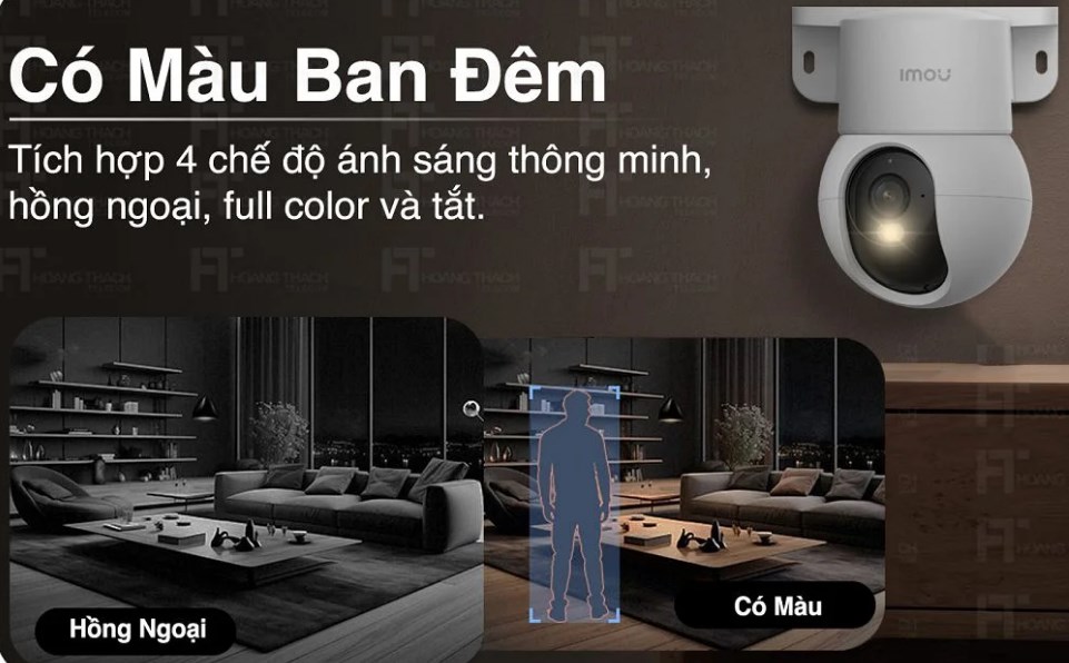 • Tầm nhìn ban đêm 10m. Tích hợp 4 chế độ ánh sáng thông minh, hồng ngoại, full color và tắt.
