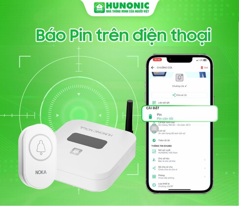 Tích hợp với app Hunonic: Gửi thông báo đến điện thoại khi có khách bấm chuông – điều mà hầu hết chuông không dây trên thị trường chưa làm được.