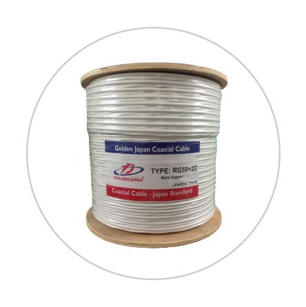 Cấu tạo dây cáp Camera RG 59 + 2C: Lõi đồng trục: Đây là lõi của cáp đồng trục. Cáp đồng trục Golden Link RG59/U + 18/2 có lõi dây được cấu tạo từ thép mạ đồng với đường kính là 0,81 mm. Lớp dung môi cách điện: Cáp đồng trục Golden Link RG59/U + 18/2 có lớp cách điện Polyethylene FPE, là chất rắn màu trắng đục, được dùng để ngăn cách giữa lõi dây và các lớp bảo vệ chống nhiễu.