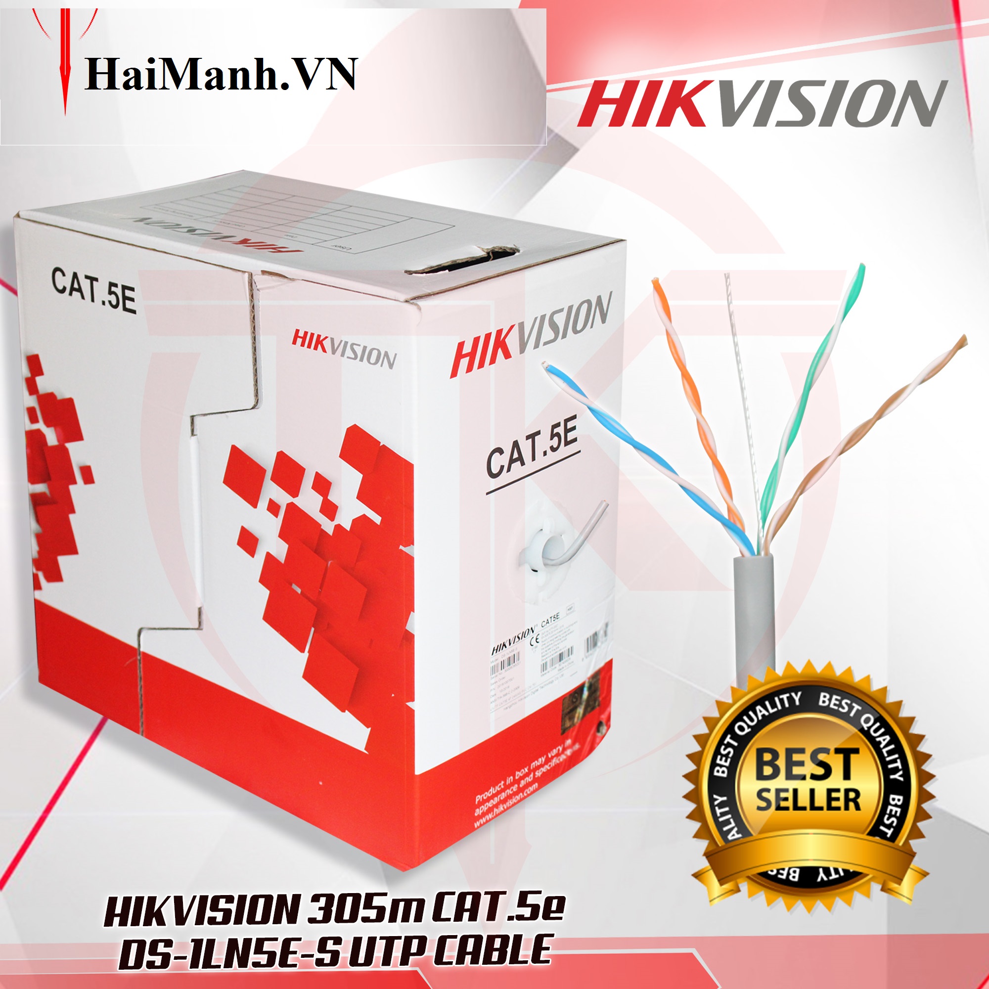 Dây cáp mạng CAT5E Hikvision DS-1LN5E-S có 8 Lõi đồng nguyên chất 99.95%, đạt tiêu chuẩn của các công trình dự án lớn, nhập khẩu 100%, nguyên cuộn 305m, giá tốt tại HaiManh.VN