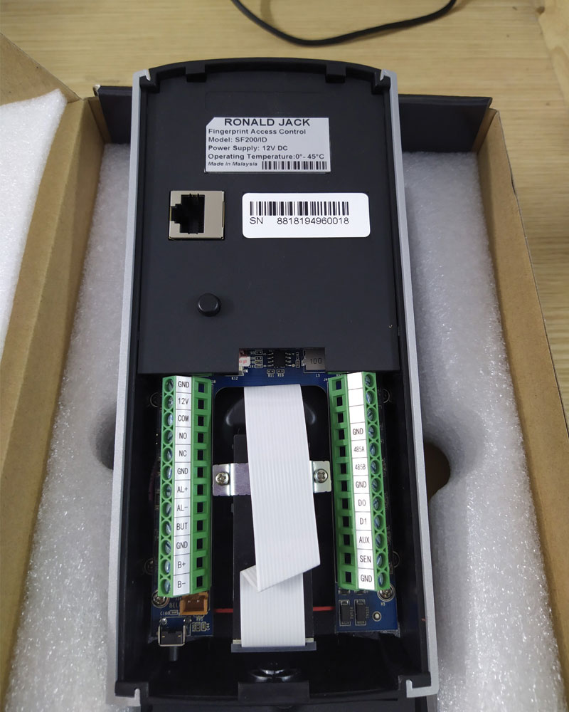 Ronald Jack SF200 là thiết bị chấm công kết hợp chức năng kiểm soát cửa, giao tiếp với máy tính thông qua giao thức mạng, và hoạt động với phần mềm để kiểm soát thời gian ra vào.